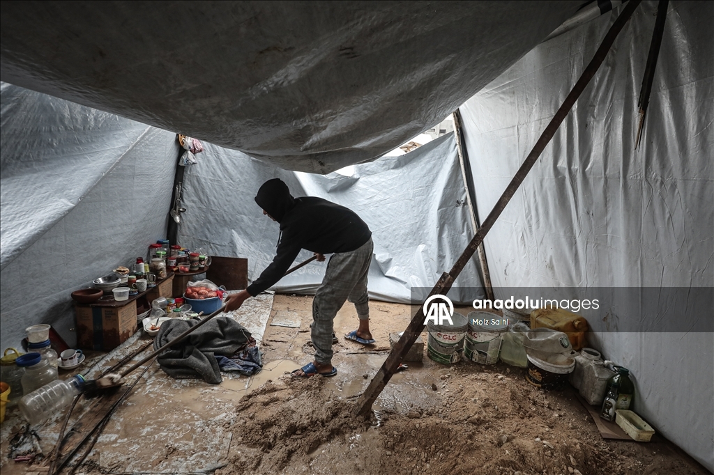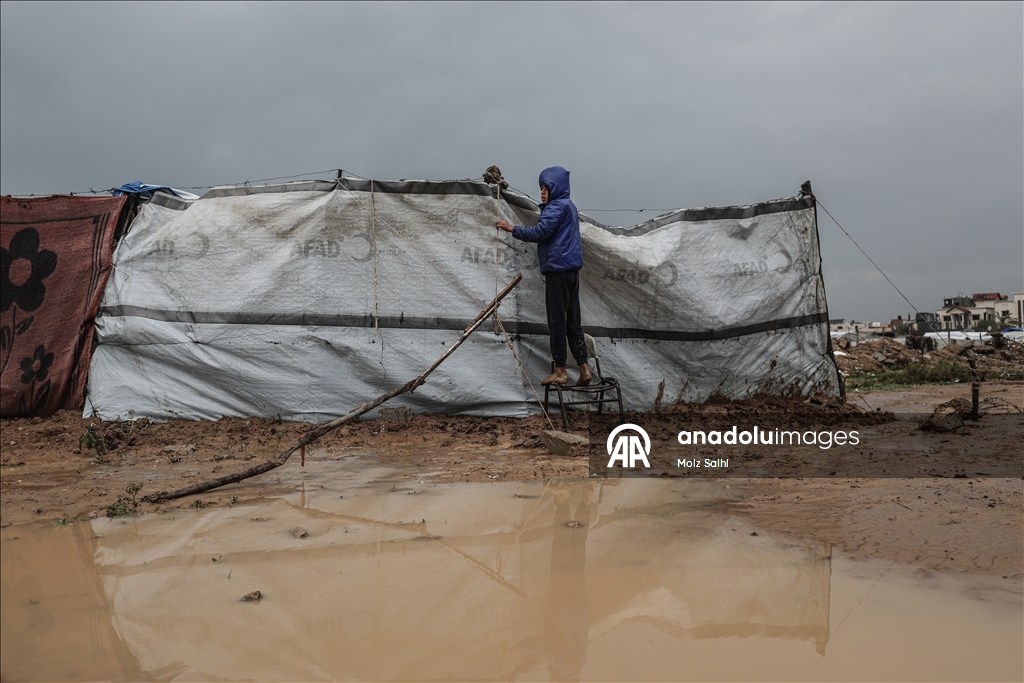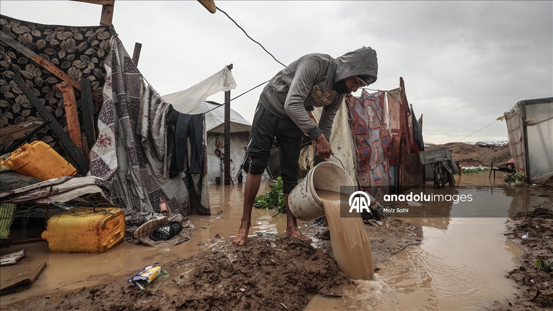 Bölgede etkili olan aşırı yağışlar ve fırtına nedeniyle Gazze'deki Filistinlilerin çilesi daha da arttı. Gıda sıkıntısı ve barınma sorunu çeken Filistinlilerin kaldığı çadırları aşırı yağışlar nedeniyle su bastı.