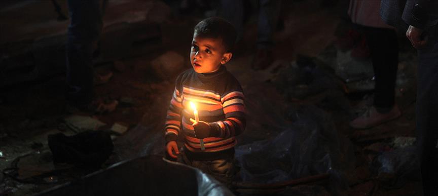 Küçük Gazeteciler Kulübü'nden onlarca çocuk, İsrail'in Gazze saldırılarında yıkılan Ed-Delv ailesine ait evin enkazı üzerinde saldırılarda hayatını kaybeden çocukları temsilen 43 mum yaktı.