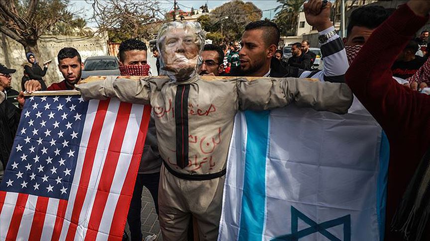 Gazzeliler, ABD yönetiminin İsrail-Filistin meselesine "çözüm bulmak" iddiasıyla hazırladığı sözde barış planını protesto etti.