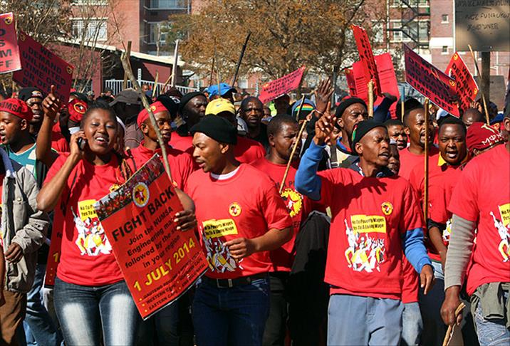 Maaşlarına zam ve konut yardımı ödeneği isteyen binlerce Ulusal Güney Afrika Metal İşçileri Sendikası (NUMSA) üyesi, Güney Afrika Cumhuriyeti’nin Johannesburg kentinde gösteri düzenledi.