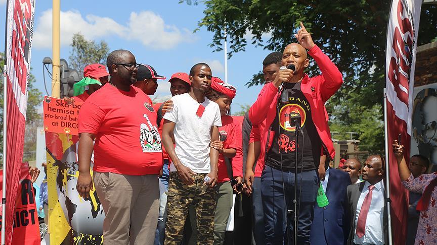 Güney Afrika Komünist Parti Gauteng Bölgesi Genel Sekreteri Alex Mdakane gösteride yaptığı konuşmada, "İktidar partisi Afrikalı Ulusal Kongre (ANC) hükümetinin Filistin'e desteğinin azaltmak için çalışan 'satılmış' insanlar var." dedi.