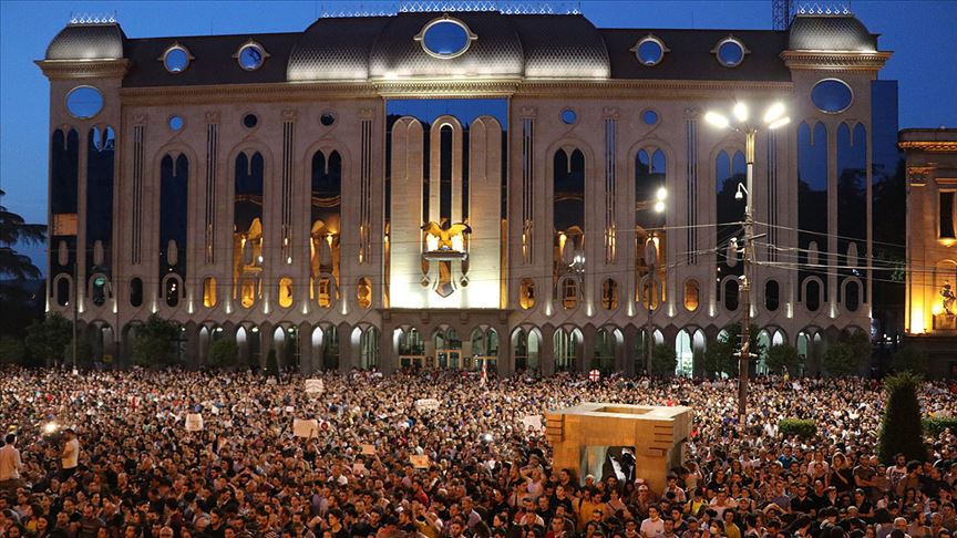 Gürcistan'da muhalefet ve binlerce kişi, 20 Haziran'daki 26. Ortodoks Parlamentolararası Genel Asamblesi'ne Rus heyetin katılması ve bir Rus milletvekilinin parlamento başkanının makamında konuşma yapmasına tepki göstermek için parlamento binası önünde toplanmıştı.