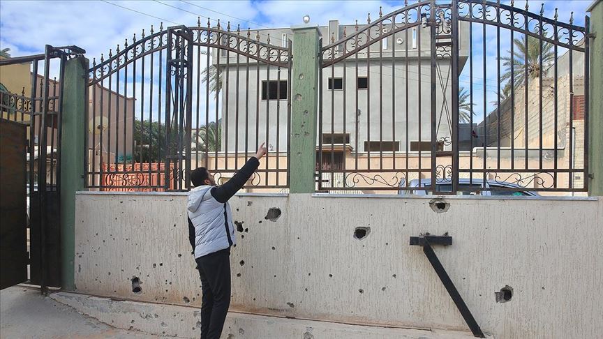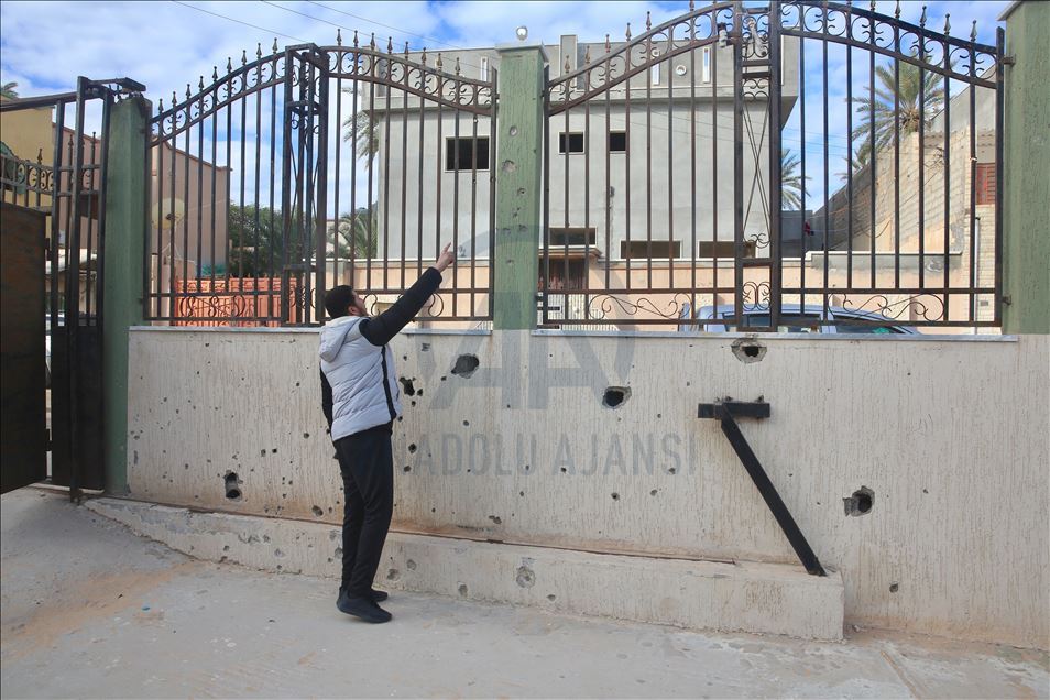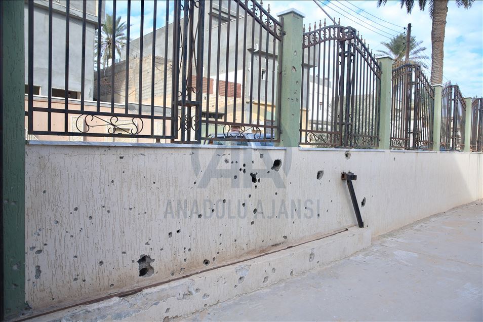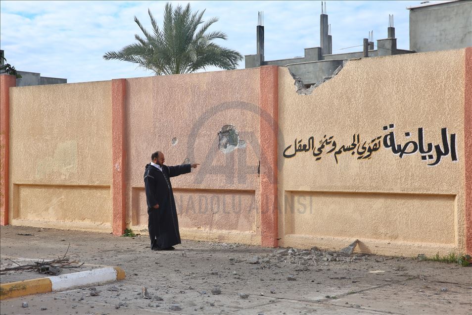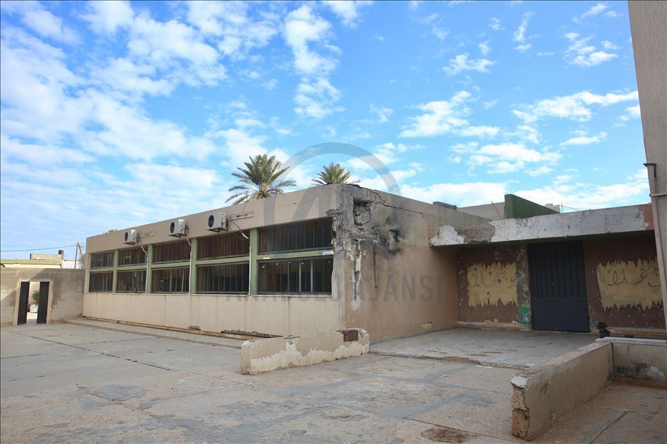 AA ekibi, Hafter milislerinin ayrım gözetmeden bombaladığı Mitiga Havalimanı çevresindeki, üç ayrı top mermisinin isabet ettiği Şürfet el-Mellaha mahallesindeki okulu ziyaret etti.