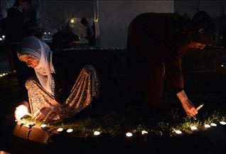 Halepçe Katliamı'nın yıl dönümü için Erbil'e gelen katılımcılar şehitlik anıtına çelenkle karanfil bırakarak, anıt özel defterini imzaladı.