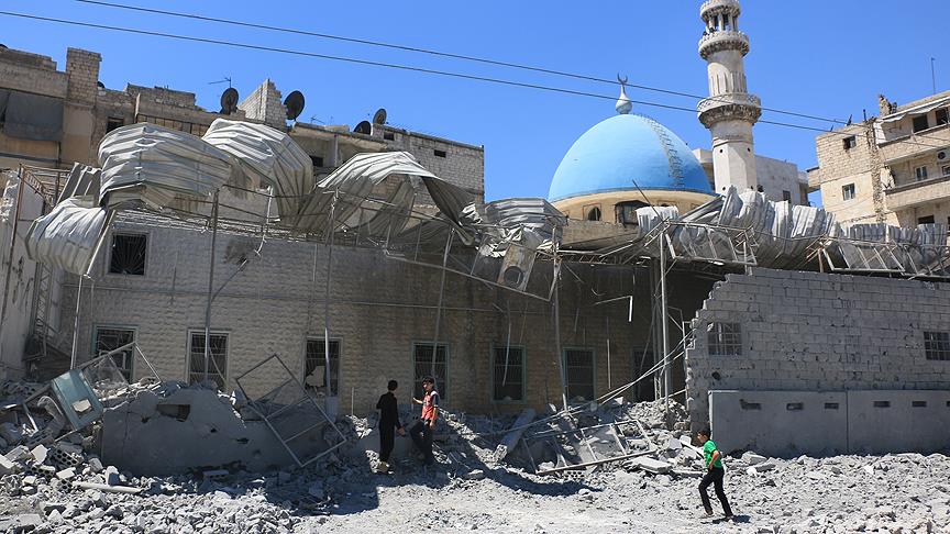 Suriye'de Rusya ve Beşşar Esed rejimine ait savaş uçaklarının yoğun saldırısına maruz kalan Halep'te ilk kez halkın cuma namazına gitmemesi istendi.