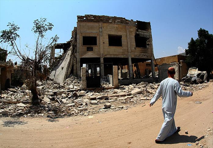 Türkiye sınırındaki Essalame Sınır Kapısı'nın karşısında bulunan ve bir kaç hafta önce meydana gelen bombardıman öncesi 70 bin nüfusa sahip olan kasabada aralarında ev, işyeri, okul, cami ve kamu binasının da bulunduğu yüzlerce bina tahrip edilmiş durumda.