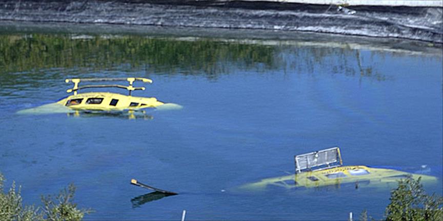 İspanya'nın orta kesimlerindeki Albacete kentindeki Bienservida barajına düşen helikopterler, kurtarılmayı beklerken barajın yüzeyinde ilginç bir görüntü oluşturdu.