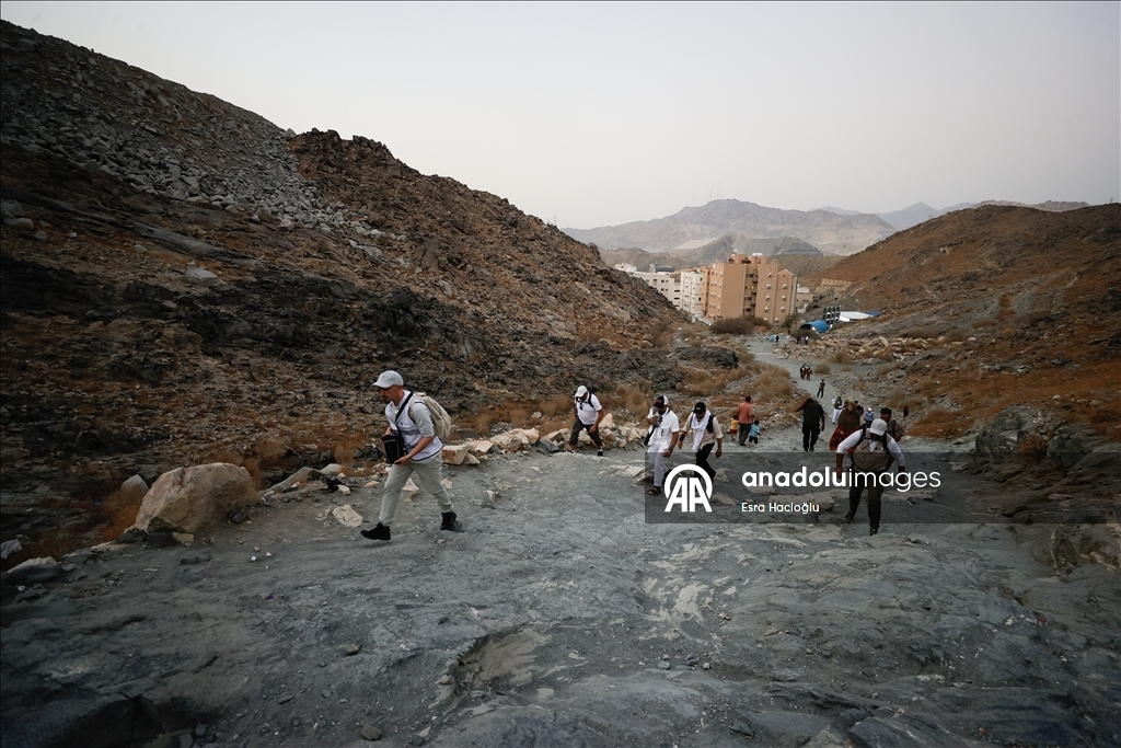 Hazreti Muhammed ve sahabelerinin 622 yılında Mekke'den Medine'ye gerçekleştirdiği hicret yürüyüşünün rotasının izini sürmek isteyen katılımcılar, çölde yapacakları yürüyüş öncesi Mekke'deki manevi noktalara ziyaretlerde bulundu.