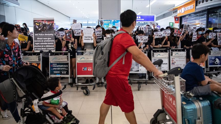 Hong Kong'da 3 aydır süren protestolar, 12-13 Ağustos'ta havalimana sıçramış, göstericilerin polisle çatıştığı olaylar nedeniyle yüzlerce uçuş iptal edilmişti.