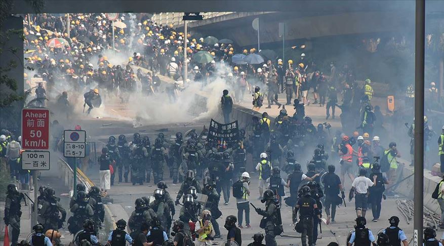 Çin'in Hong Kong Özel İdari Bölgesi'nde suçluların Çin'e iadesi tasarını protesto eden göstericilere polis göz yaşartıcı gazla müdahalede bulundu. ( Fuat Kabakcı - Anadolu Ajansı )
