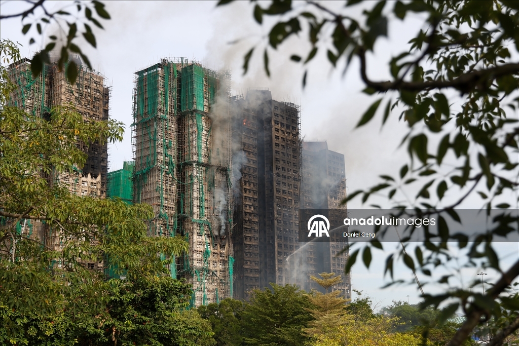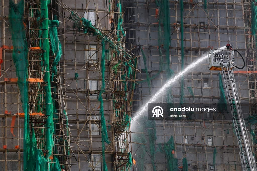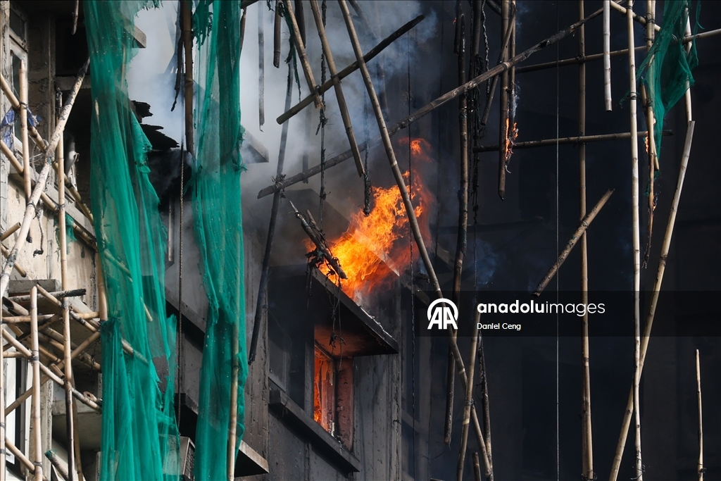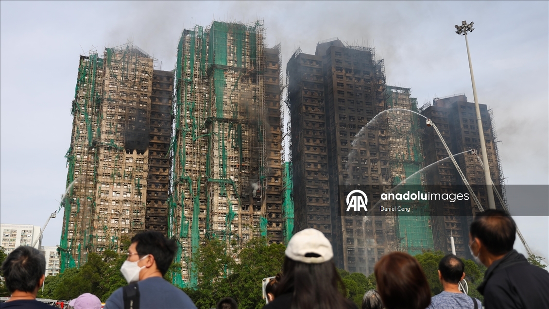 Dün öğle saatlerinde 1900'den fazla dairenin bulunduğu Wang Fuk Sitesi'nde başlayan yangın, binaların tadilatı için dış cepheye kurulu bambu iskeleler ve yanıcı izolasyon malzemeleri yüzünden hızla yayılmıştı.