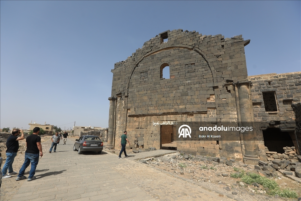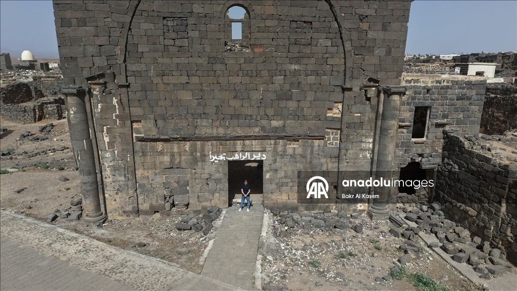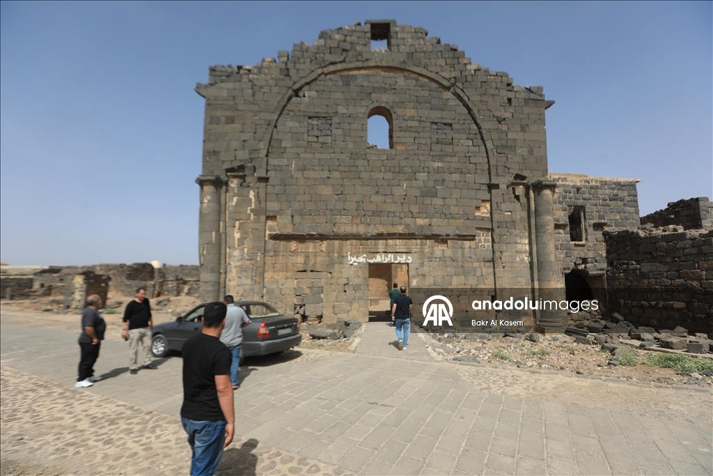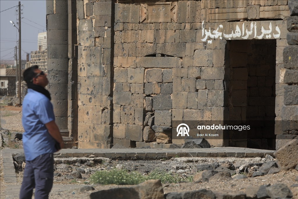 Kentte tur rehberliği yapan bölge sakinlerinden Ahmed el-Mikdad, "Burası antik bir kent. Burası Hz. Muhammed'in çocukken Rahip Bahira ile karşılaştığı bölge olarak bilinmektedir. Bahira burada Peygamber Efendimiz ile tanıştı. Busra şehrinde (antik kent ve çevresi) savaş öncesi yaklaşık 40 bin kişi, Antik kentin merkezinde ise sadece 5 bin kişi yaşıyordu. İnsanlar burada yaşıyordu ve önemli turistik bir yerdi. Esed rejimi ve İran destekli milislerin saldırıları sonucu bölge halkının yüzde 99'u göç etti. Manastır saldırılardan zarar gördü." dedi.
