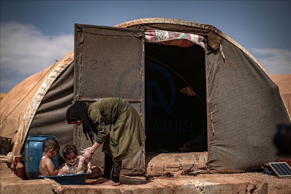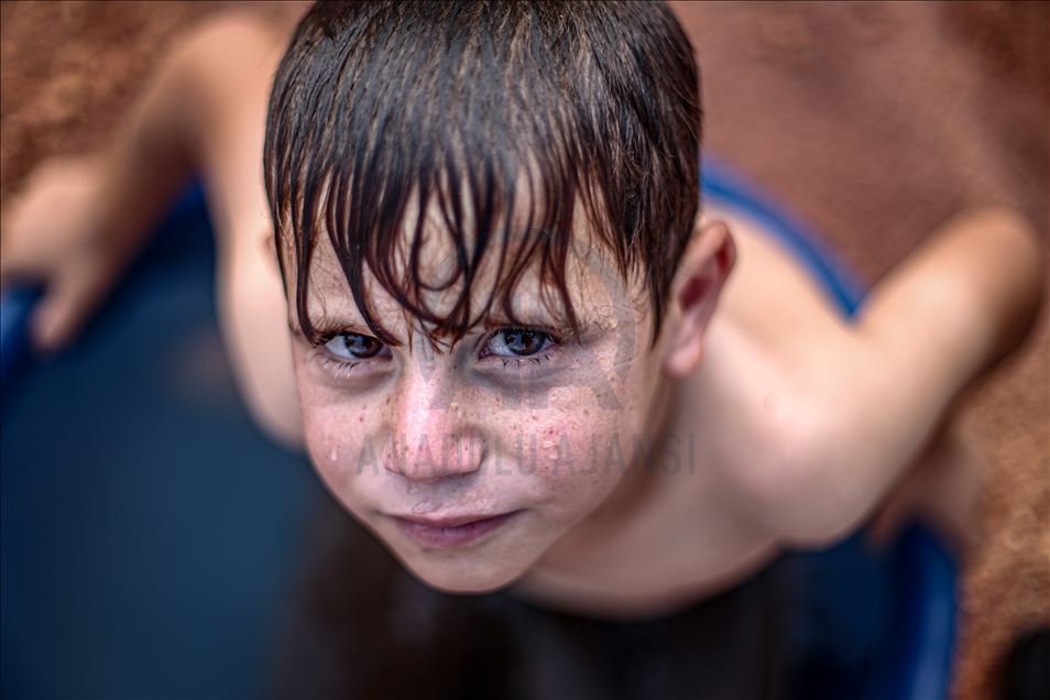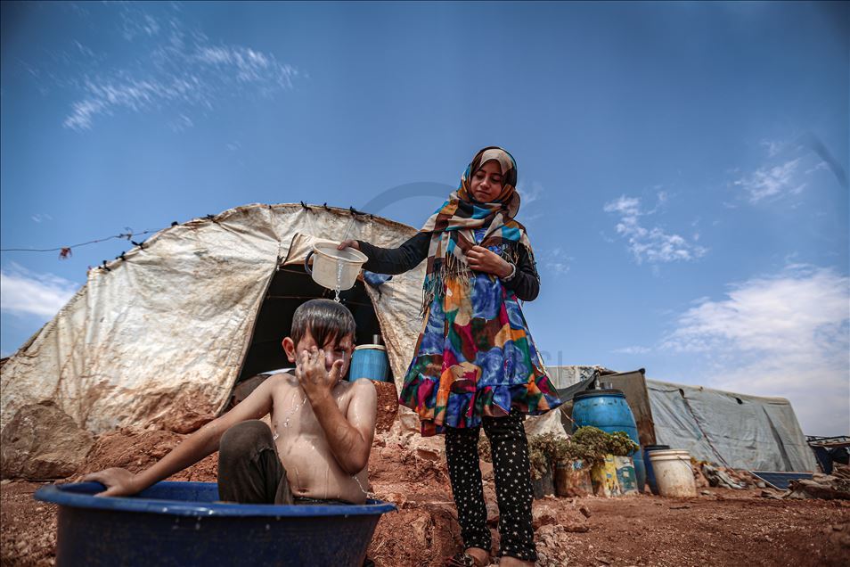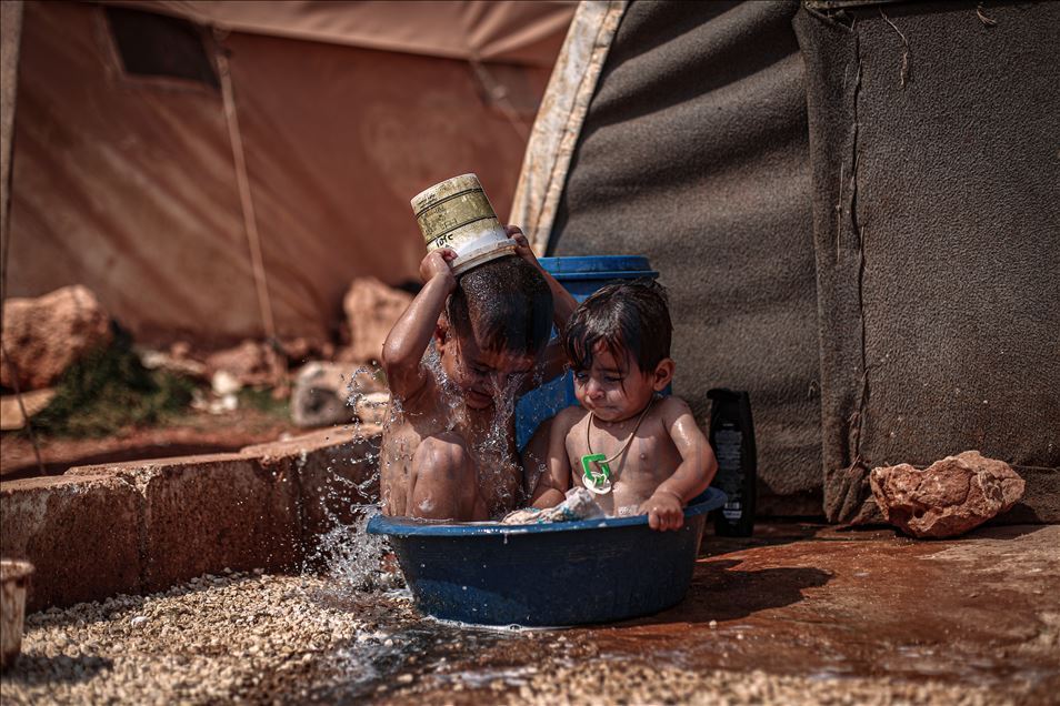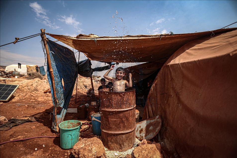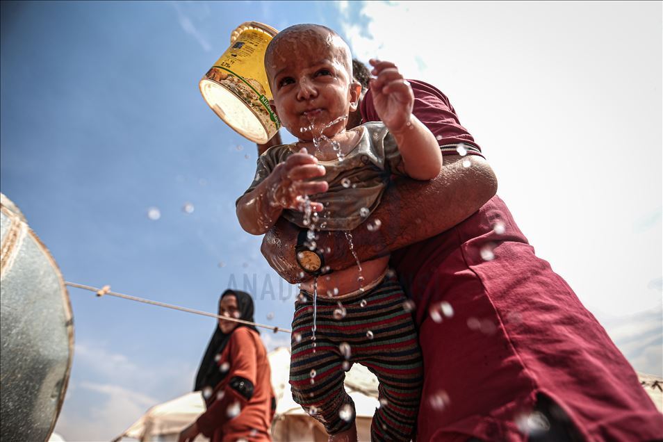 Suriye'nin kuzey batısındaki İdlib ilinde gün içinde 43 dereceye kadar çıkan sıcaklık, çoğunluğu kadın ve çocuğun yaşadığı çadırlarda zor anlara neden oluyor.