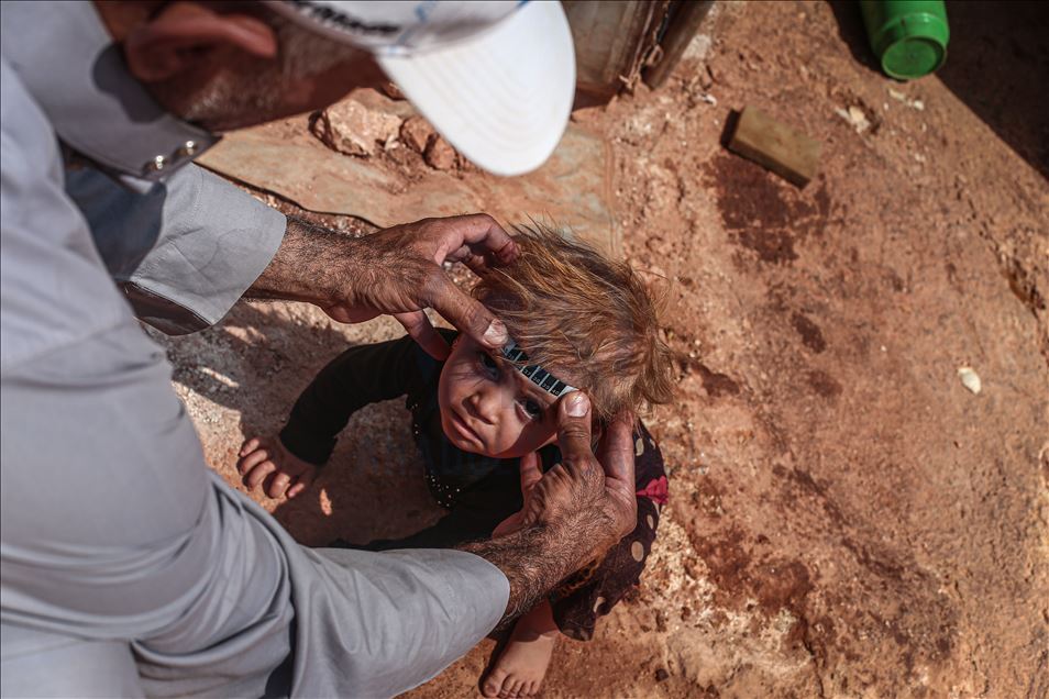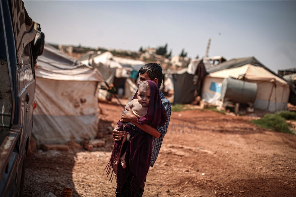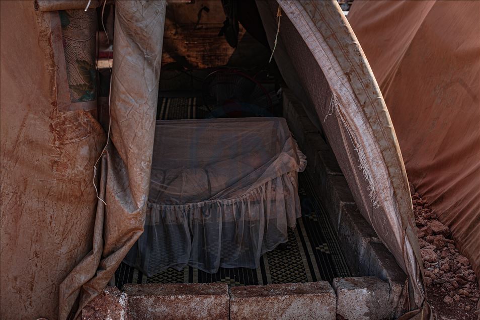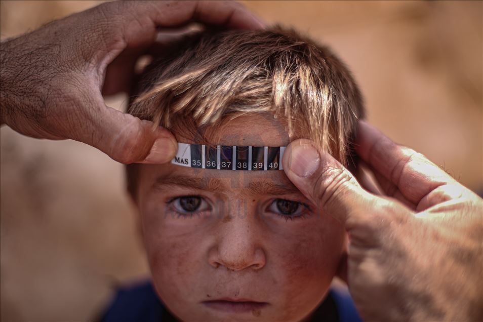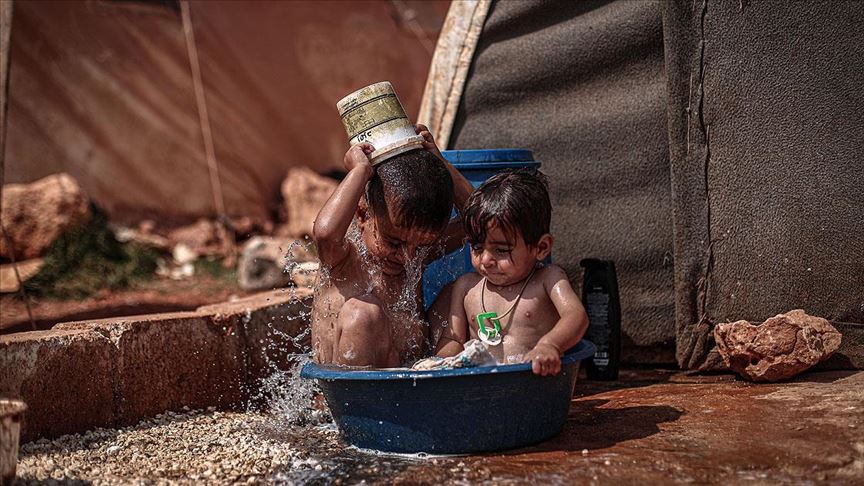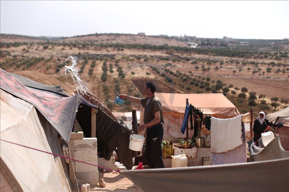 Suriye'nin kuzey batısındaki İdlib ilinde gün içinde 43 dereceye kadar çıkan sıcaklık, çoğunluğu kadın ve çocuğun yaşadığı çadırlarda zor anlara neden oluyor.