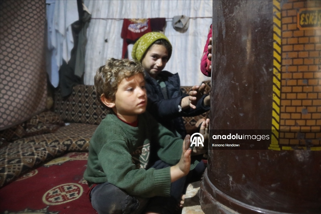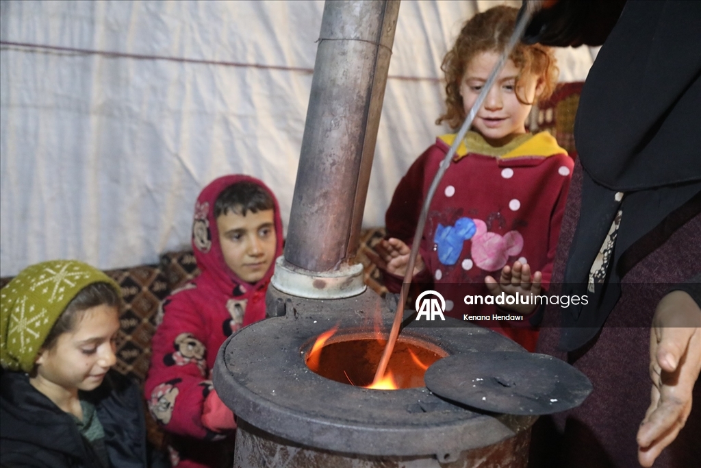 İdlib ve Halep'teki çadır kamplarda yaşayan Suriyeliler çetin kış şartlarıyla mücadele ediyor