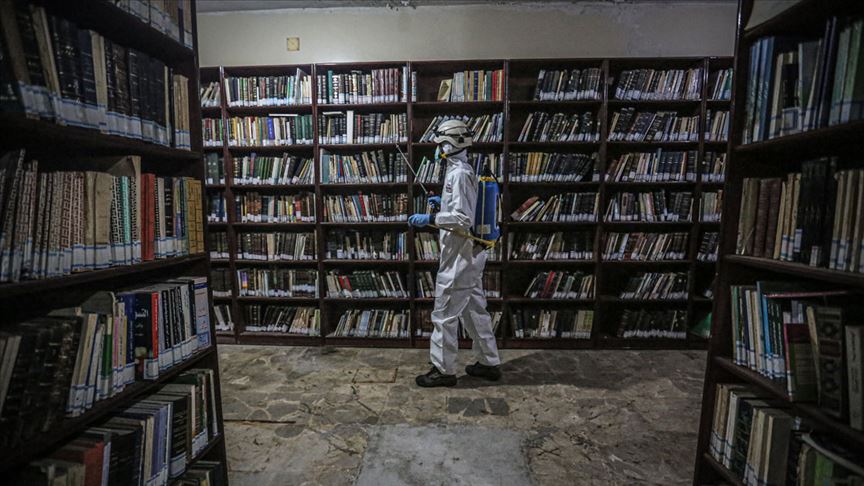 Beyaz Baretliler (Sivil Savunma), Beşşar Esed rejimi ve destekçilerinin saldırılarında sağlık sektörü neredeyse "iflas eden" İdlib ilinin merkezinde yeni tip koronavirüse (Kovid-19) karşı dezenfeksiyon ve halkı bilinçlendirme amaçlı çalışmalarını sürdürüyor.