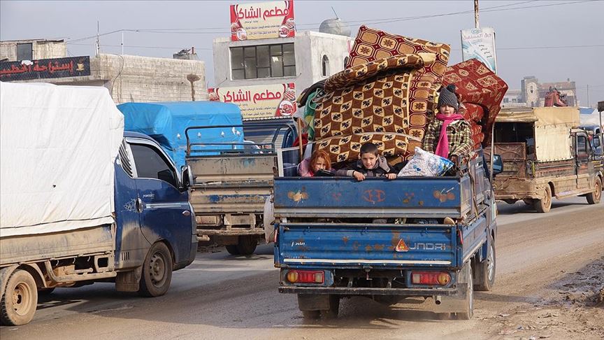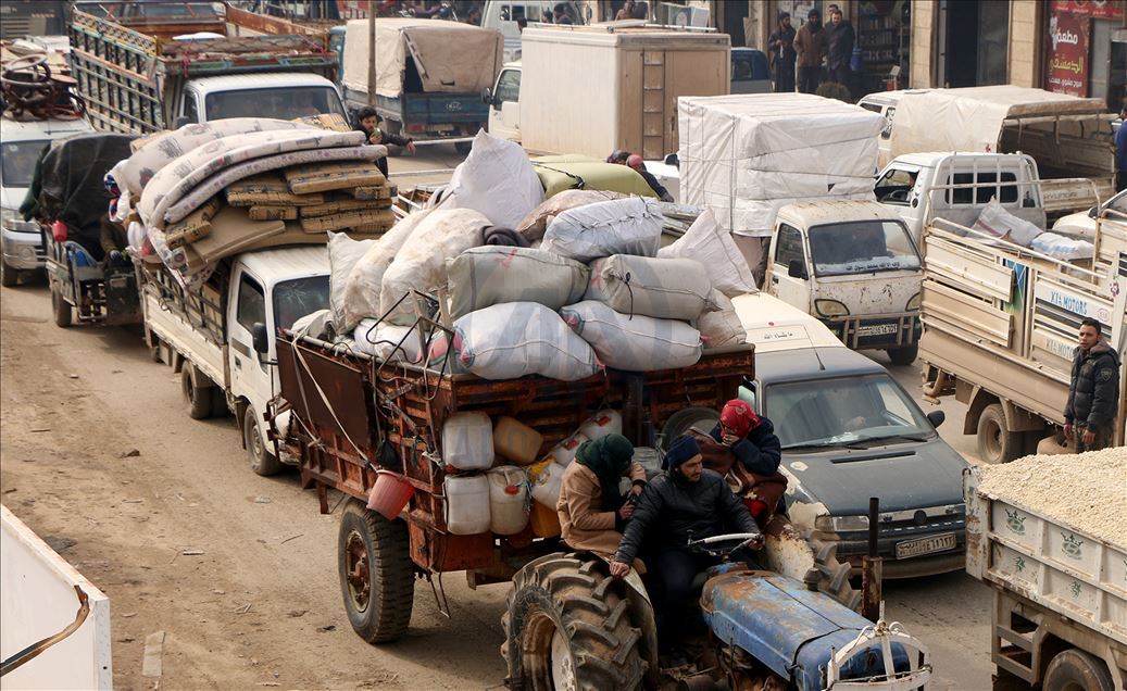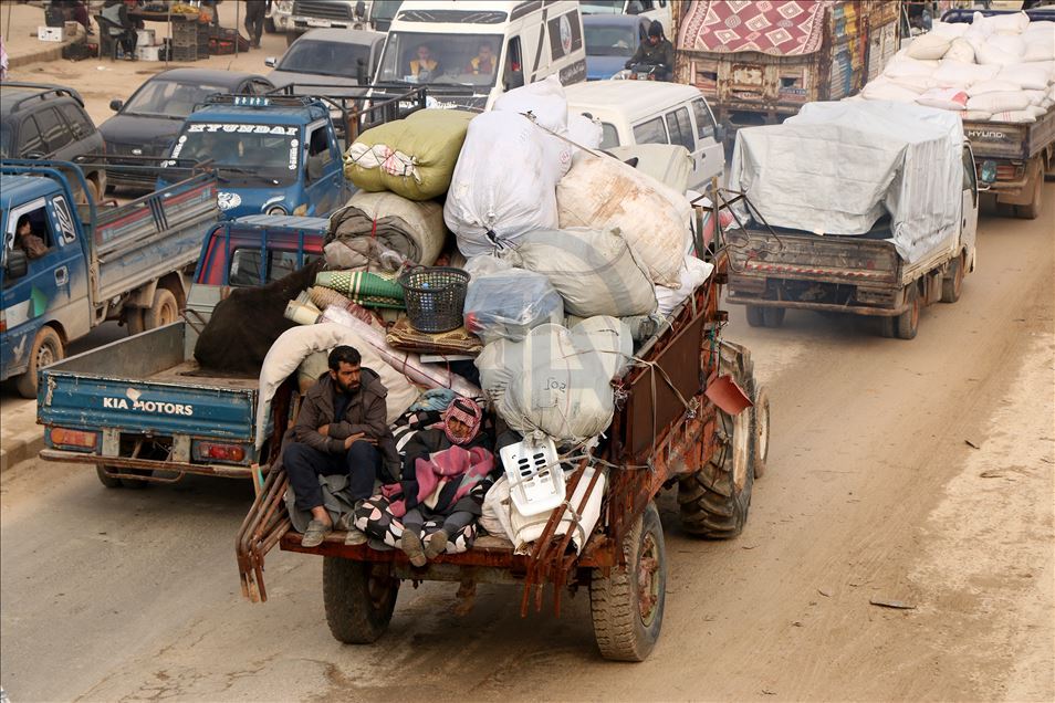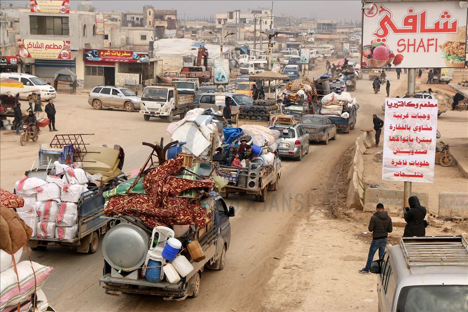 Suriye'de Beşşar Esed rejimi ve destekçilerinin yoğun saldırıları nedeniyle son 24 saatte 21 bin sivil daha Türkiye sınırı yakınlarına sığınırken, Kasım 2019'dan bu yana yerinden edilenlerin sayısı 502 bine ulaştı. Yerinden edilenlerin büyük kısmı, Türkiye sınırı hattındaki kamplar bölgesine gelirken bir kısmı da Türkiye'nin teröristlerden temizlediği Fırat Kalkanı ve Zeytin Dalı Harekatı bölgesine sığınıyor. ( İbrahim Dervış - Anadolu Ajansı )