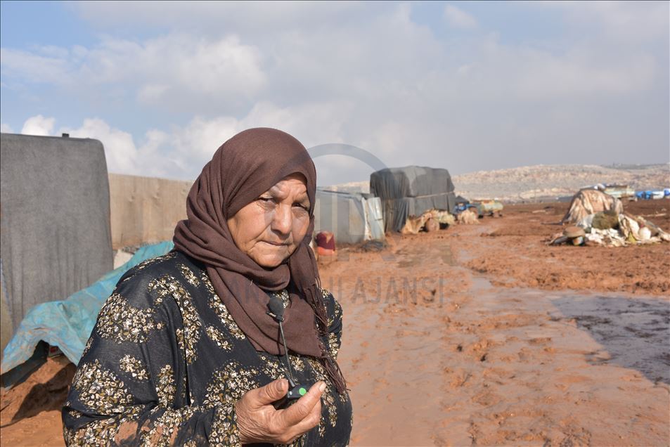 60 yaşındaki Um Hüseyin, sığındıkları bölgenin çamur deryası haline geldiğini belirterek, "Vallahi billahi üşüyoruz. Geceleri soğuktan uyuyamıyoruz. Beraberimizde getirdiğimiz eşyaları kırıp, yaktık. Saman dolu poşetleri yırtıp içindekilerini yakarak ısınmaya çalıştık." diye konuştu.