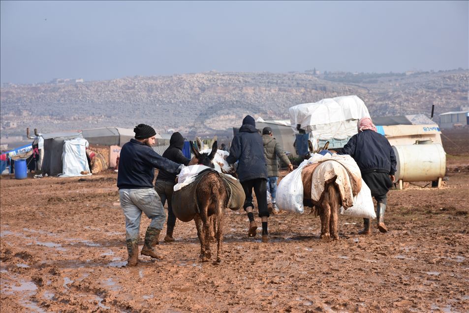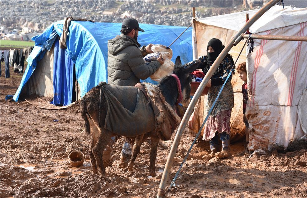 "Saldırılar durursa, bu kamplara gerek kalmaz. Sivil toplum kuruluşları da boşuna buralarda geçici olan şeylere para harcamak zorunda kalmaz. Bugün eşekler üzerinde ekmek dağıtımını yaptık. İnan, eşekler bile çamura battı. Buradaki çilenin son bulması için insanlığın Esad rejimine karşı durması lazım."