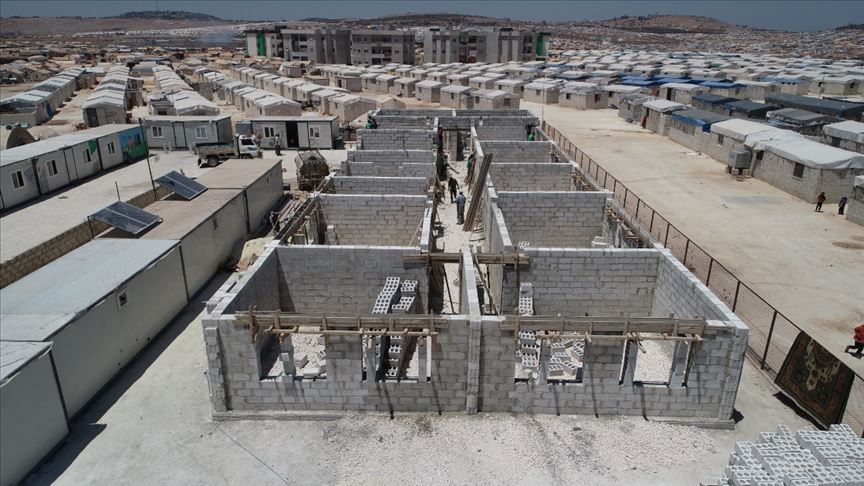 Suriye'nin farklı bölgelerinde savaş mağduru ve ihtiyaç sahibi siviller için briketten inşa edilen evlerin bulunduğu kamp alanları kuran İHH, çocukların eğitimlerine devam edebilmeleri için de aynı arazilere okul binası inşa ediyor.