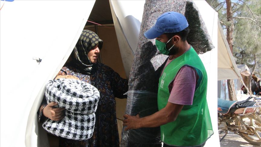 Kamplarda yaşayan ailelerin ihtiyaçlarını gidermek için yardım çalışmalarına daha da yoğunlaştıklarını belirten Tahiroğlu, "Afrin'deki kamplarda yaşayan 250 aileye halı ve battaniye yardımı yapıldı. Geçtiğimiz yıl İdlib'den Afrin'e göç ederek buradaki kamplara sığınan Suriyeli ailelere destek olmayı sürdürüyoruz. Gıda, barınma, eğitim ve sağlık alanlarında insani yardım çalışmalarımız devam edecek.'' ifadelerini kullandı.