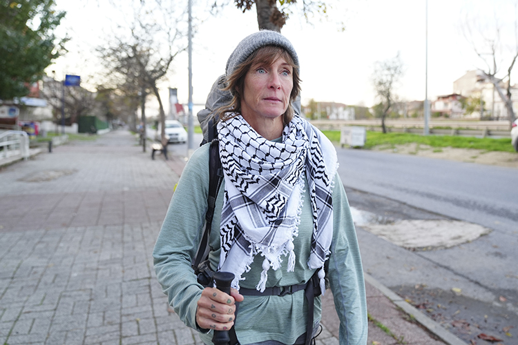 İngiliz aktivist Ruth Herbert, Filistinliler İçin Tıbbi Yardım (Medical Aid for Palestinians) kuruluşu adına bağış toplamak amacıyla Birleşik Krallık'tan İstanbul'a yürüyor.