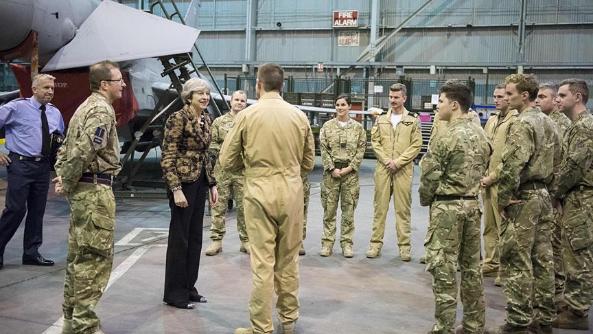 May, burada, İngiltere'nin, terör örgütü DEAŞ'e karşı hava operasyonlarında kullandığı üsteki askerlere konuşma yaptı.