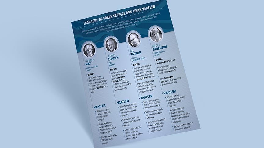 Birleşik Krallık’ta erken genel seçimde partiler ekonomi, sağlık ve eğitim sistemi gibi klasik siyaset alanlarının yanı sıra ülkenin Avrupa Birliği’nden (AB) ayrılması (Brexit) etrafında aldıkları farklı tutumlarla da seçmenin karşısına çıkacak.