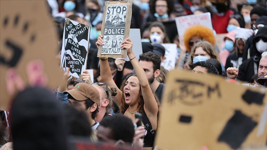 ABD'de siyahi George Floyd’un polisler tarafından öldürülmesi İngiltere’nin başkenti Londra’da protesto edildi.
