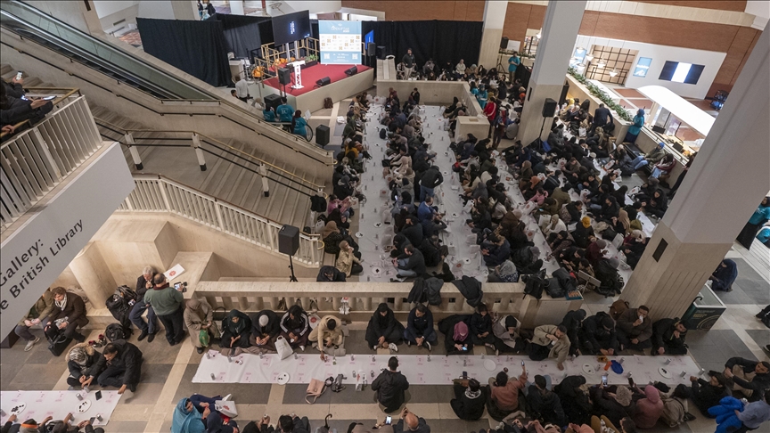 Ramazan Çadırı Projesi'nin 10. yılında başkent Londra'daki British Library'de düzenlenen iftar programına Müslümanların yanı sıra diğer din ve inançlardan çok sayıda kişi katıldı.