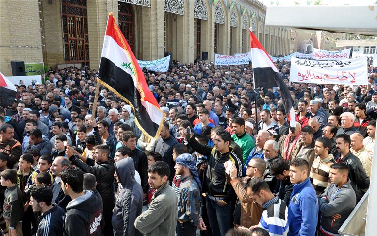 Yaklaşık yüz binin üzerinde gösterici, "Maliki bizimle kafa tokuşturma", "Haklarımızı alacağız", "Vatanın bölünmesine hayır", "Mezhepçiliğe hayır" şeklinde sloganlar attı.
