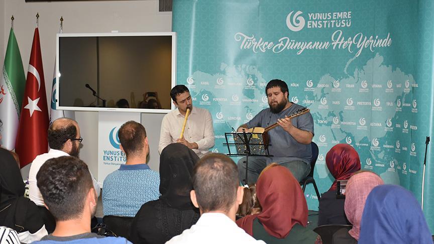 Başkent Tahran'daki enstitü binasında gerçekleştirilen programda Türkiye'den Santuri Sedat Anar'ın bağlamasına Neyzen Sercan Peşan eşlik etti.