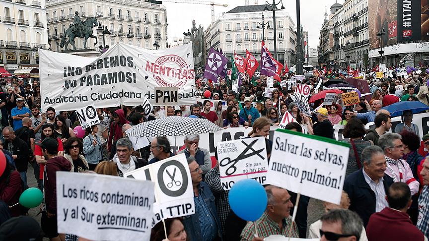 İspanya'nın büyük kentlerinde ekonomik kriz nedeniyle uygulanan kemer sıkma önlemleri protesto edildi.