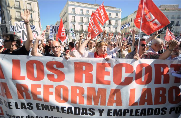 Son 3 gündür meclis, iktidardaki Halk Partisi veya bazı bakanlıkların binalarının önünde toplanan, yolları kesen memurlar, Sol Medyanı'nda bulunan Madrid özerk yönetimi binası önündeki gösterilerinde "kesintilere hayır" dedi. Ellerinde pankartları, ağızlarında düdükleri ile seslerini duyurmaya çalışan memurlar, "Hırsızlar", "Hükümet paramızı bankalara veriyor", "İstifa" şeklinde sloganlar attı.
