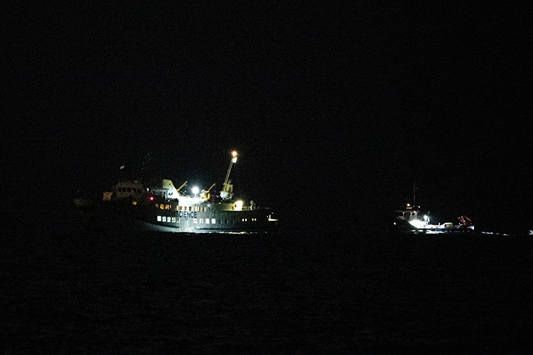 Filonun basın bilgilendirme grubundan yapılan açıklamada, "Gemilerimiz yasa dışı kuşatma altında. Kameralar devre dışı kaldı ve gemilere askeri personel çıktı. Gemiyle iletişimimiz koptu." ifadeleri kullanıldı.