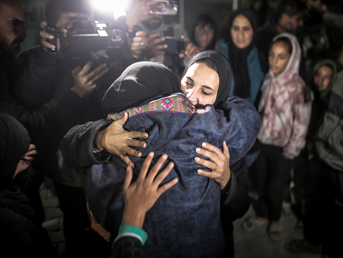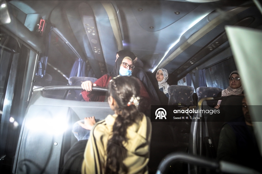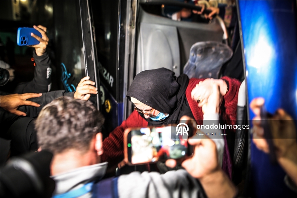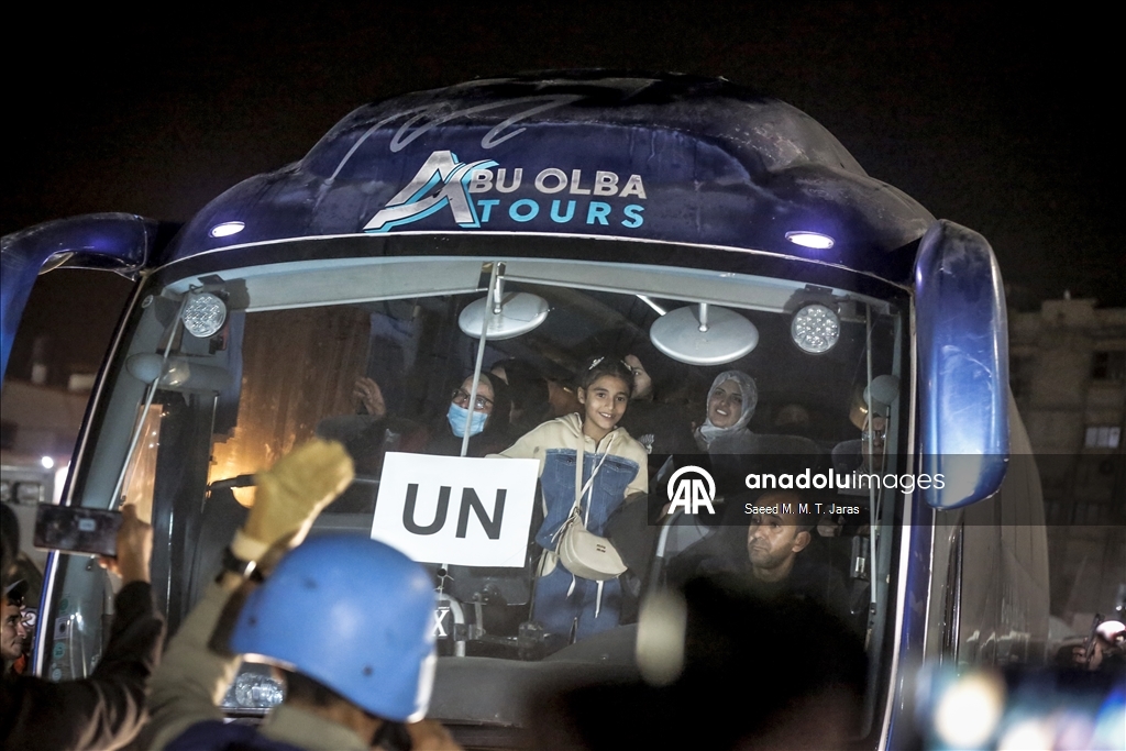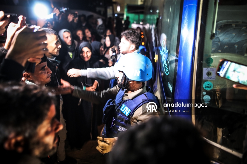 Çok sayıda Filistinli yakınlarını karşılamak için saatler öncesinden Nasır Hastanesi'nin önüne geldi. Gazze Şeridi'ne dönen Filistinlileri taşıyan aracı yakınları coşkuyla karşıladı. Aylar sonra Gazze'ye dönen Filistinliler, yakınlarına sarılarak gözyaşı döktü.
