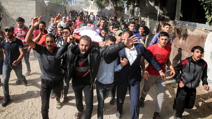 Cenaze törenine katılan yüzlerce Filistinli, İsrail karşıtı sloganlar atarak, direniş gruplarından İsrail'in saldırılarına karşılık vermelerini istedi.