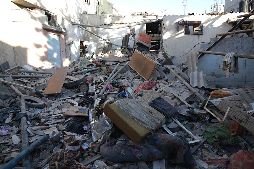 Gazze'nin orta kesimlerindeki Nusayrat Mülteci Kampı'nda İsrail ordusunun "Ebu Uteyvi" ailesine ait evi hedef alması sonucu 4 Filistinli öldü, 11'i yaralandı.