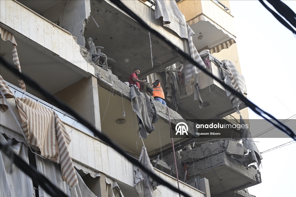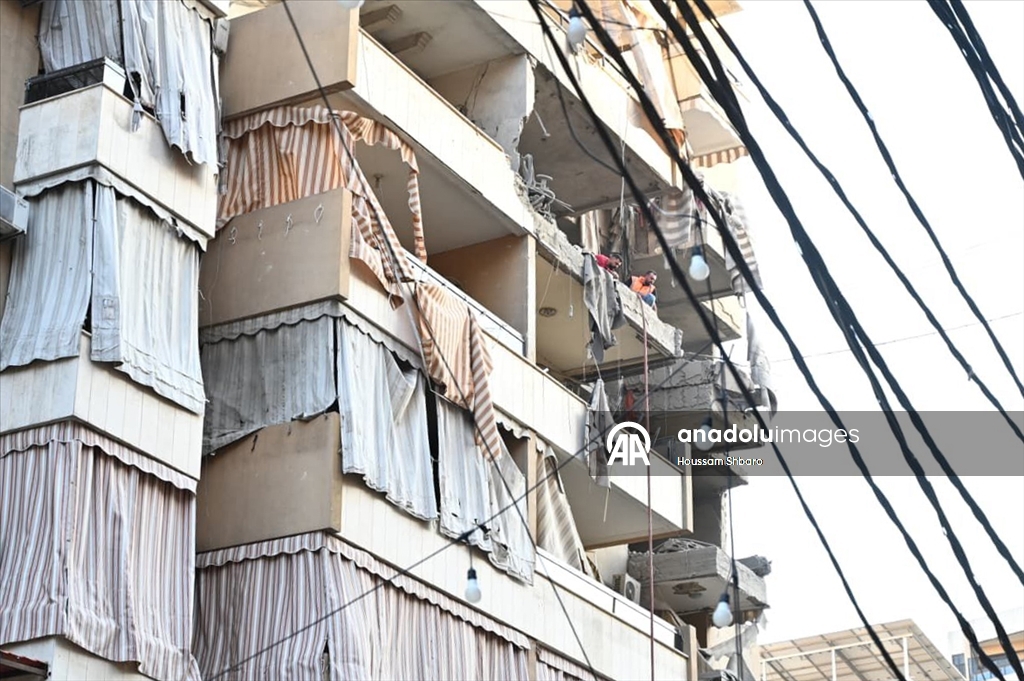 Sosyal medyaya yansıyan görüntülerde, İsrail'in hava saldırılarında büyük yıkıma uğrayan Beyrut'un güney banliyösü Dahiye'de vurulan bir binadan dumanların yükseldiği görüldü.