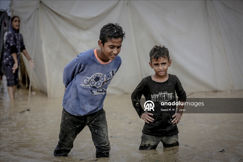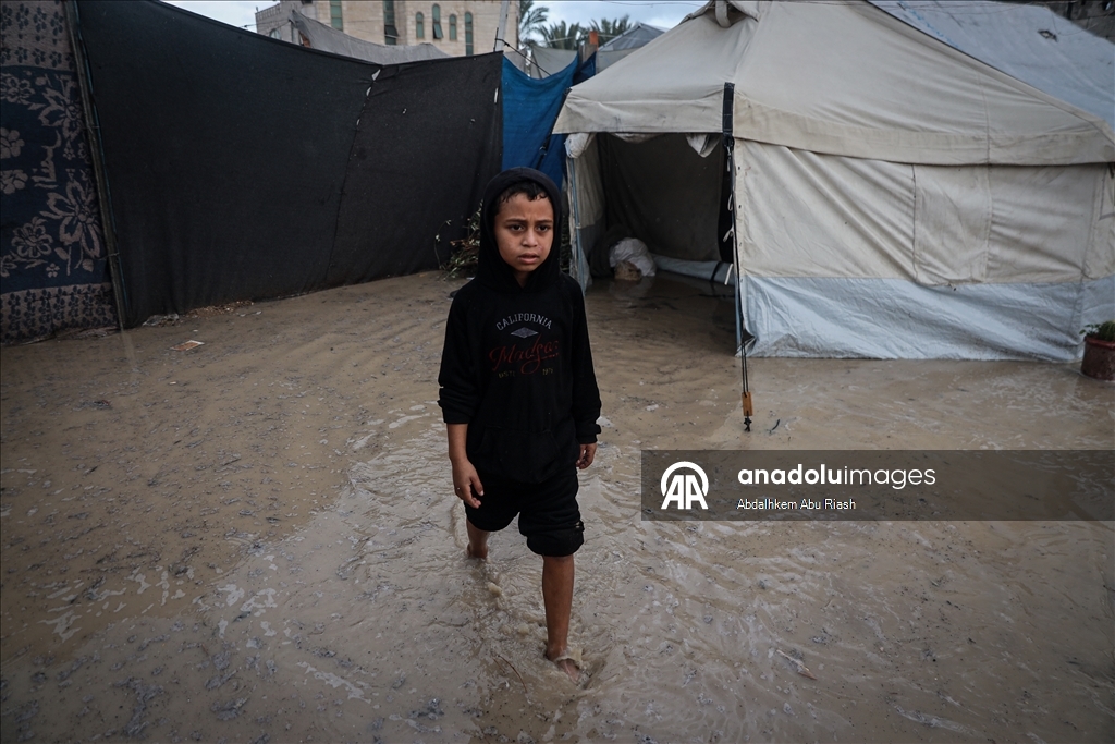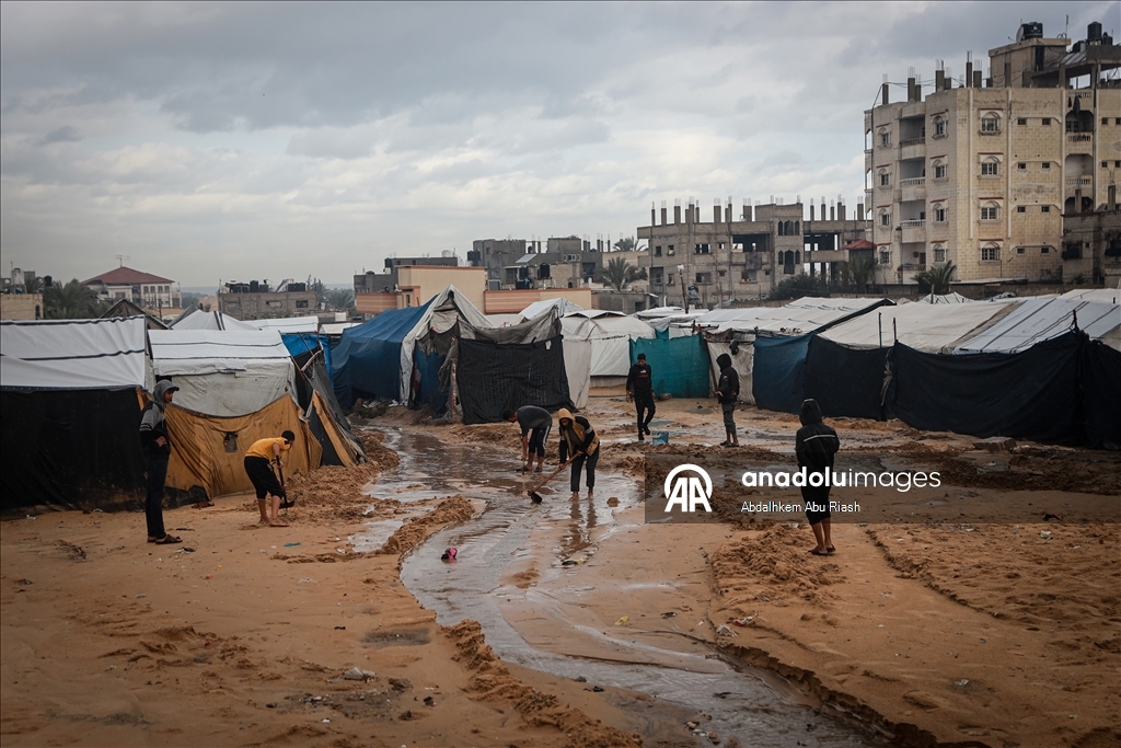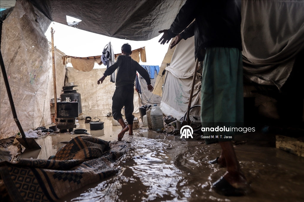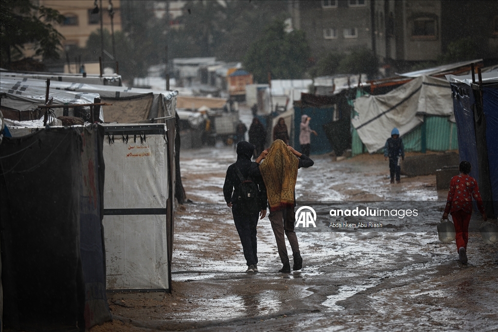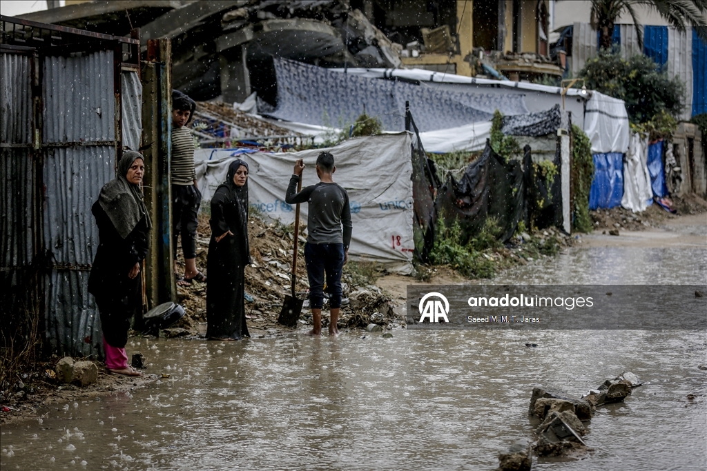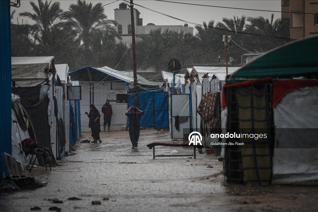 Görgü tanıklarından alınan bilgiye göre, Gazze Şeridi'nin güneyindeki Han Yunus’un Mevasi bölgesindeki Filistinlilere ait onlarca çadırı su bastı. Bazı çadırlar yağmur sularıyla sürüklenip, yıkılırken, bir kısmı ise kuvvetli rüzgar nedeniyle havaya savruldu.