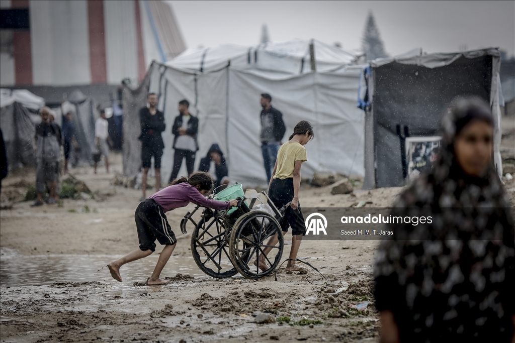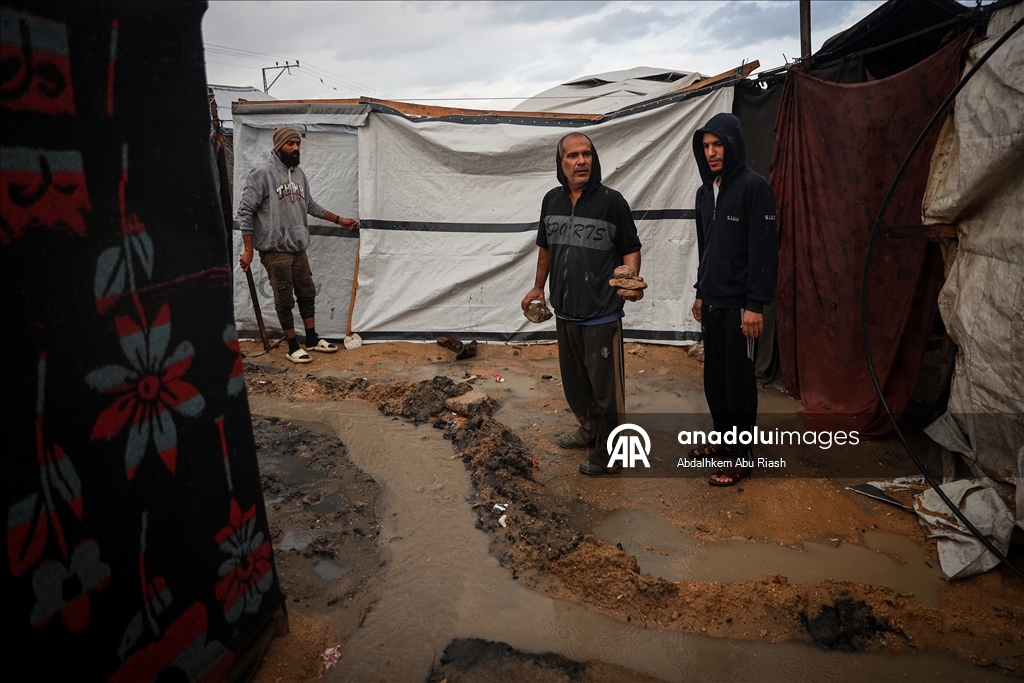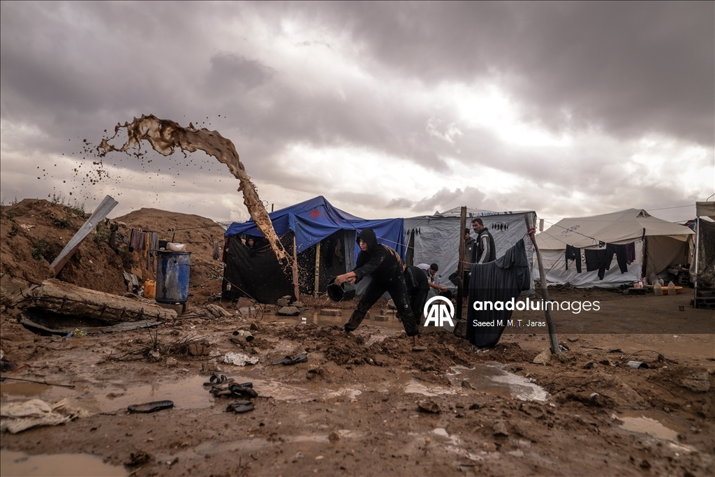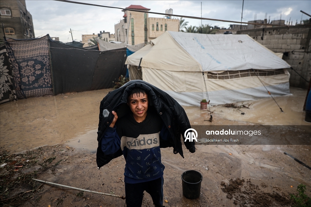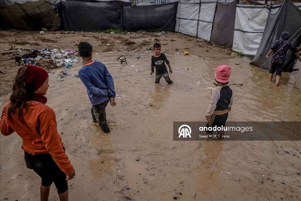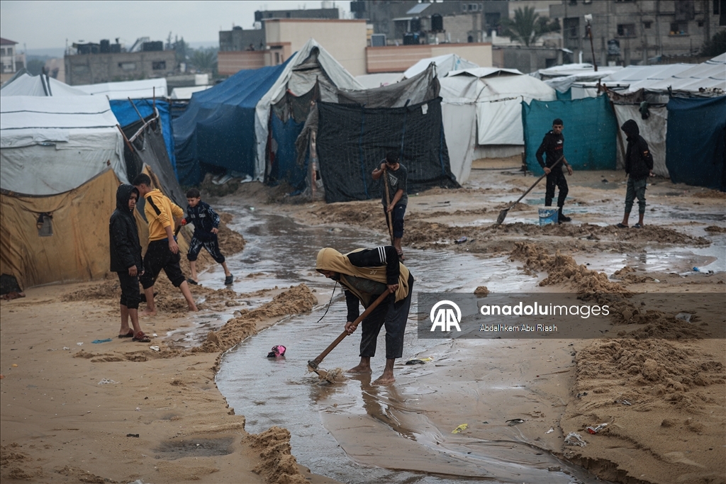Görgü tanıklarından alınan bilgiye göre, Gazze Şeridi'nin güneyindeki Han Yunus’un Mevasi bölgesindeki Filistinlilere ait onlarca çadırı su bastı. Bazı çadırlar yağmur sularıyla sürüklenip, yıkılırken, bir kısmı ise kuvvetli rüzgar nedeniyle havaya savruldu.