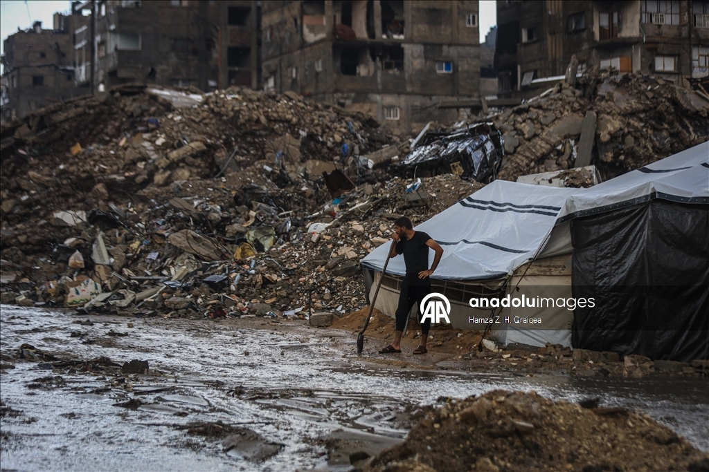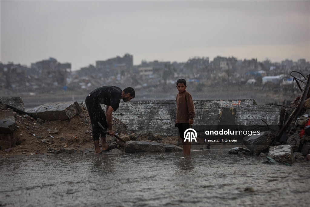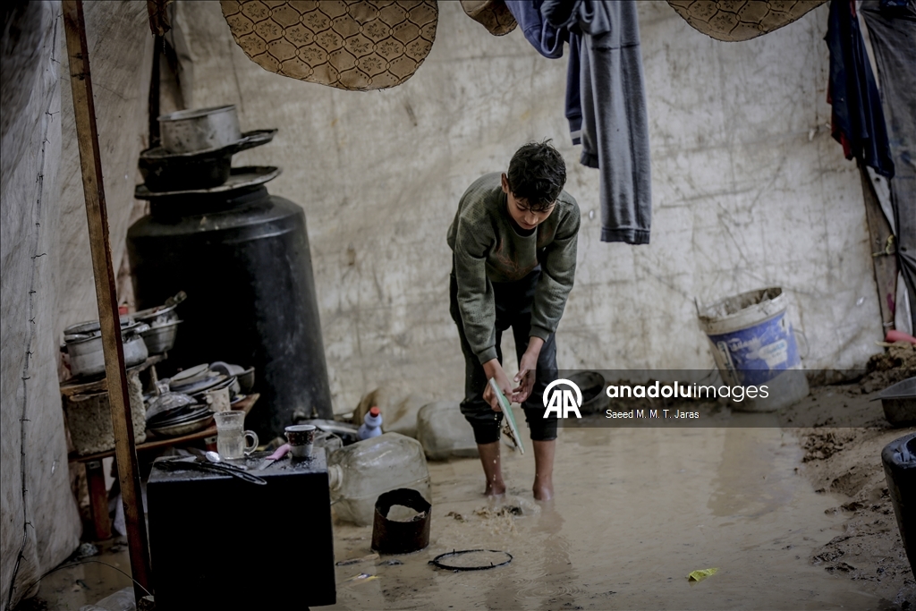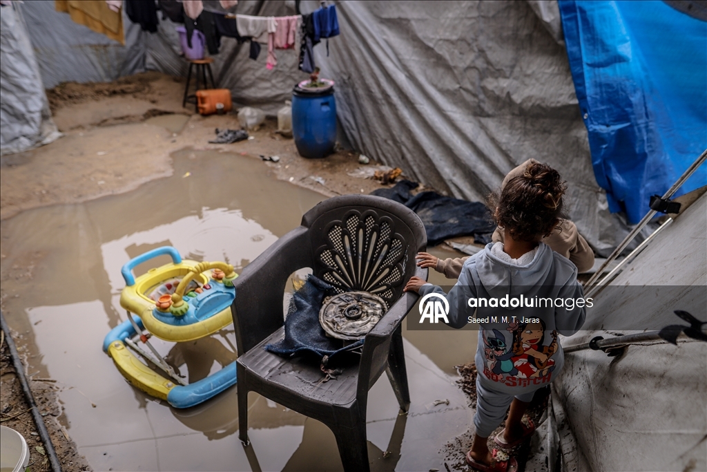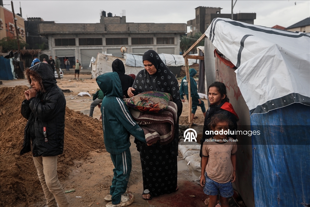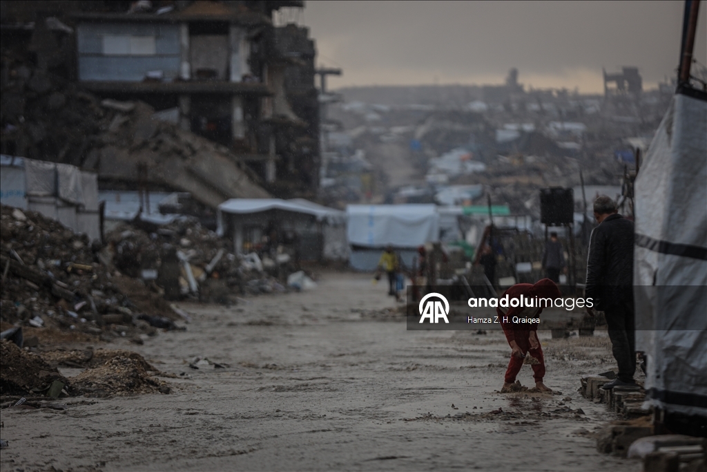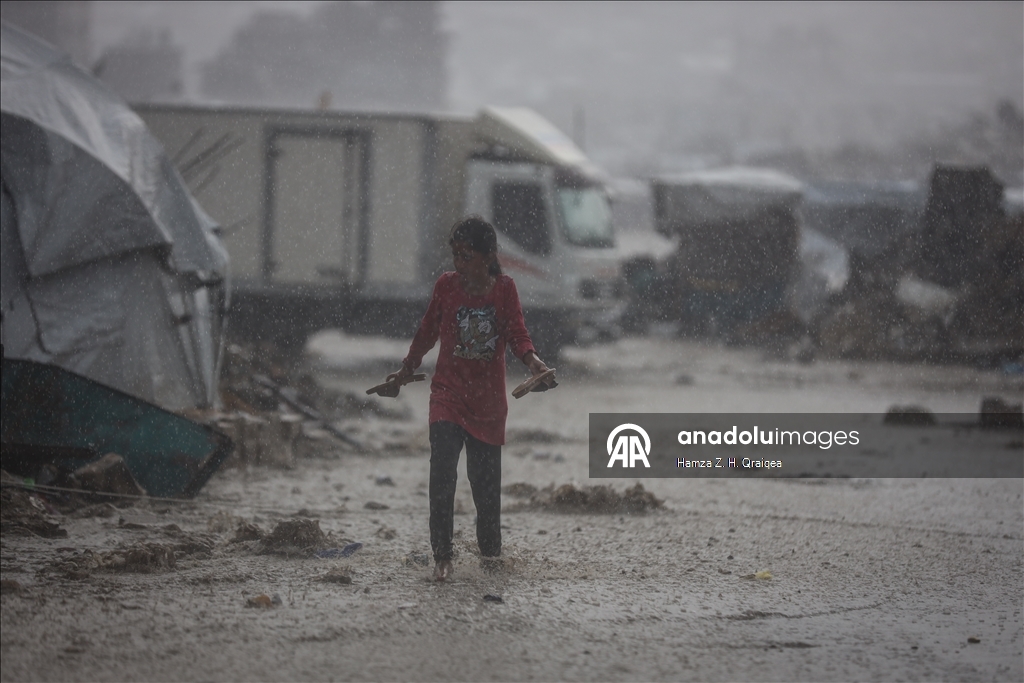 Görgü tanıklarından alınan bilgiye göre, Gazze Şeridi'nin güneyindeki Han Yunus’un Mevasi bölgesindeki Filistinlilere ait onlarca çadırı su bastı. Bazı çadırlar yağmur sularıyla sürüklenip, yıkılırken, bir kısmı ise kuvvetli rüzgar nedeniyle havaya savruldu.