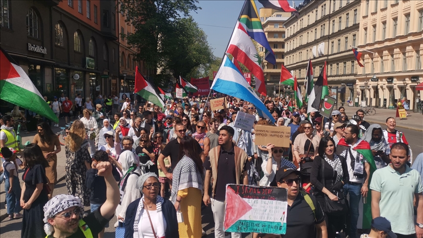 İsveç ve ABD'nin İsrail'e verdiği desteğe de tepki gösteren göstericiler, iki ülkenin, İsrail'in işlediği savaş suçlarına ortak olduğunu savundu.