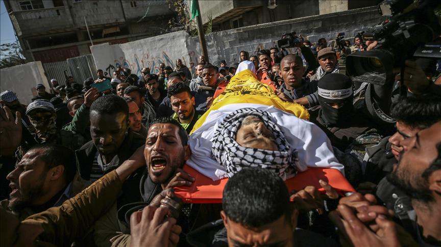 İsrail askerlerinin abluka altındaki Gazze Şeridi sınırında cuma günü düzenlenen barışçıl "Büyük Dönüş Yürüyüşü" gösterilerine müdahalesinde yaralanan ve dün şehit olan Semir Gazi en-Nebahin (47) toprağa verildi.