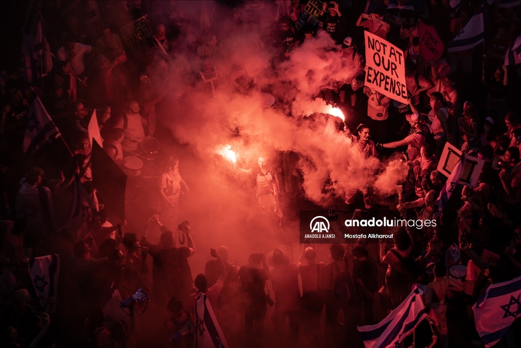 İsrailliler, Başbakan Binyamin Netanyahu öncülüğündeki koalisyon hükümetinin yargının yetkililerini sınırlayan düzenlemesi ve sağ politikalarına karşı haftalardır düzenledikleri protesto gösterilerini sürdürüyor.