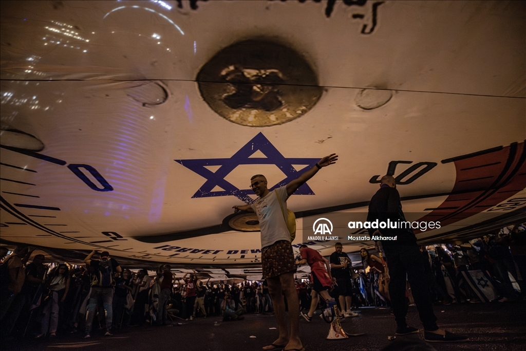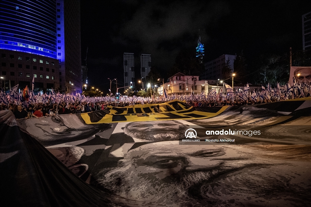 Netanyahu öncülüğündeki aşırı sağcı koalisyon hükümetinin yargı düzenlemesine karşı her hafta cumartesi akşamı kitlesel gösteriler düzenleyen İsrailliler, protestoların 20'nci haftasında ülke genelinde yine meydanlara indi.
