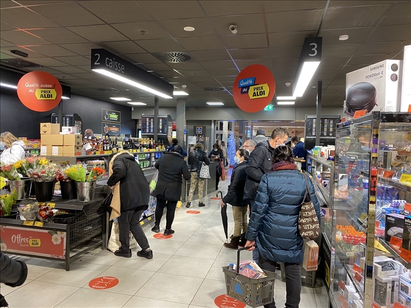 Yeni tip koronavirüs (Kovid-19) salgınının kontrol altına alınamadığı İsviçre'de halk, Noel tatili öncesi süpermarketlere adeta akın etti.