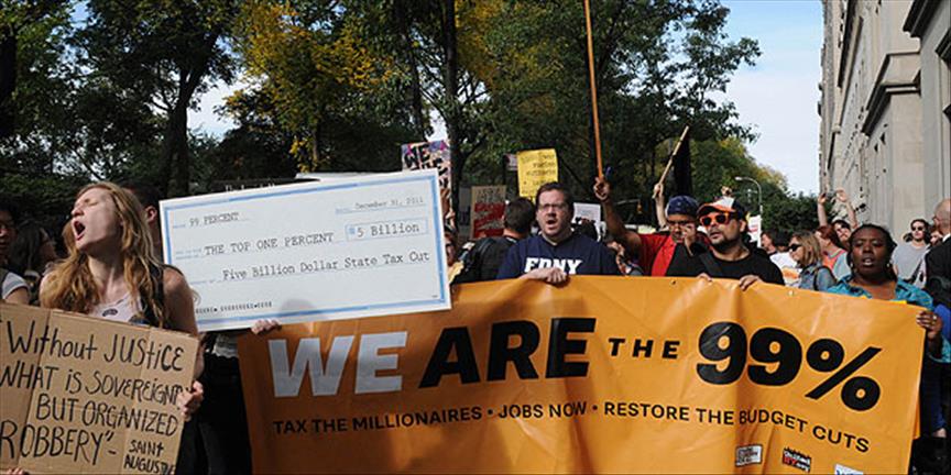 Bu arada ABD yönetiminin ekonomi politikalarını ve büyük bankaları protesto etmek için Foley Square'e yürüyen ve Amerikalılar'ı paralarını büyük bankalardan çekmeye çağıran kalabalık bir gruptan yaklaşık 20 kadarının polisin uyarısına rağmen caddeyi yaya trafiğine kapatmaktan gözaltına alındıkları bildirildi.