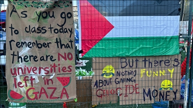 Protestocular, sık sık "Özgür Filistin" şeklinde slogan attı.