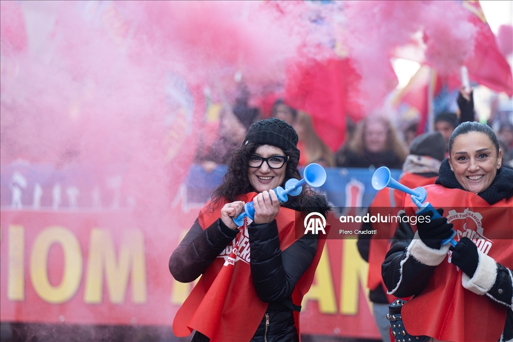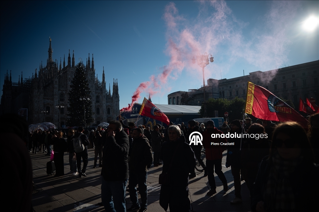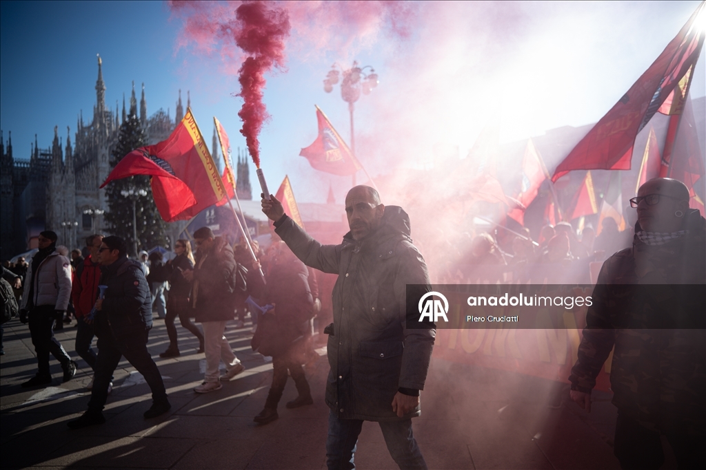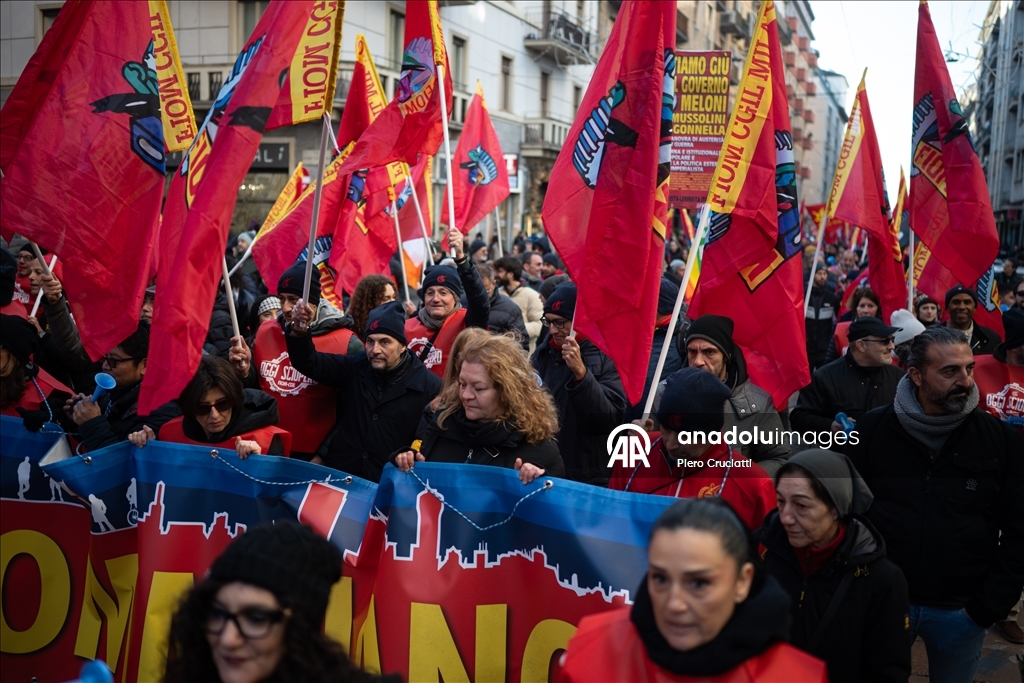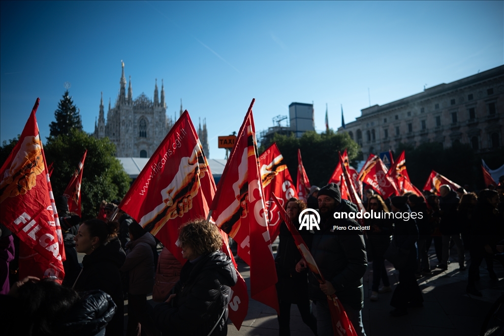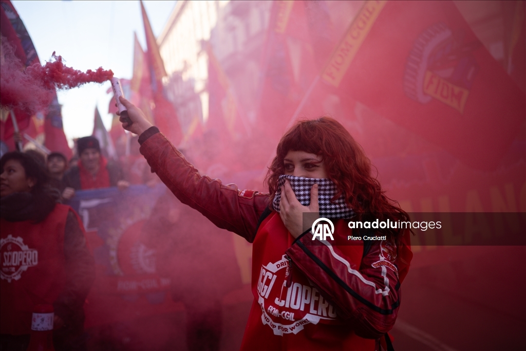 Ülkenin en büyük işçi sendikası Genel İş Konfederasyonunun (CGIL) bugün için aldığı grev kararıyla, başkent Roma ve Milano başta olmak üzere birçok kentte işçiler, iş bırakarak meydanlara indi.